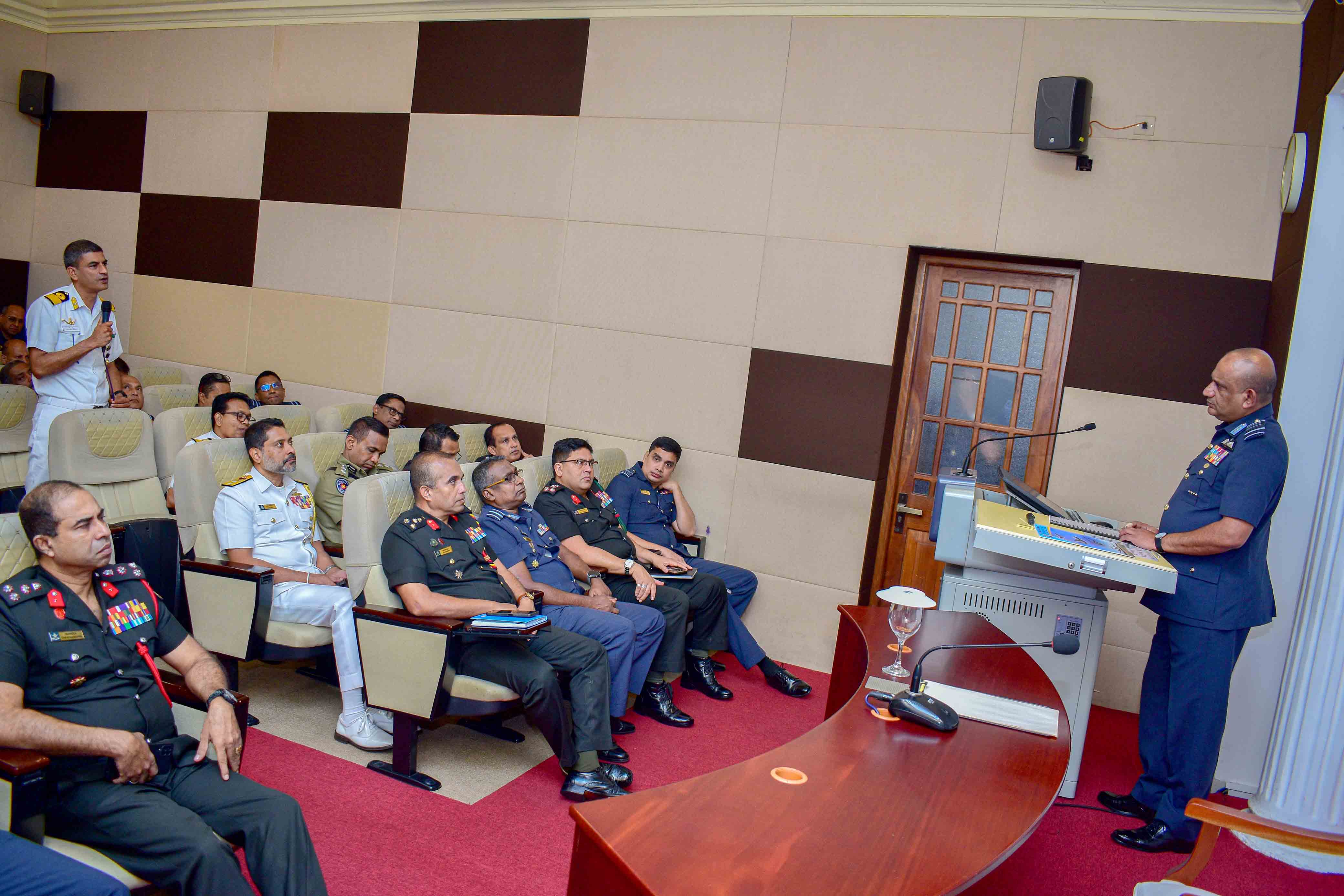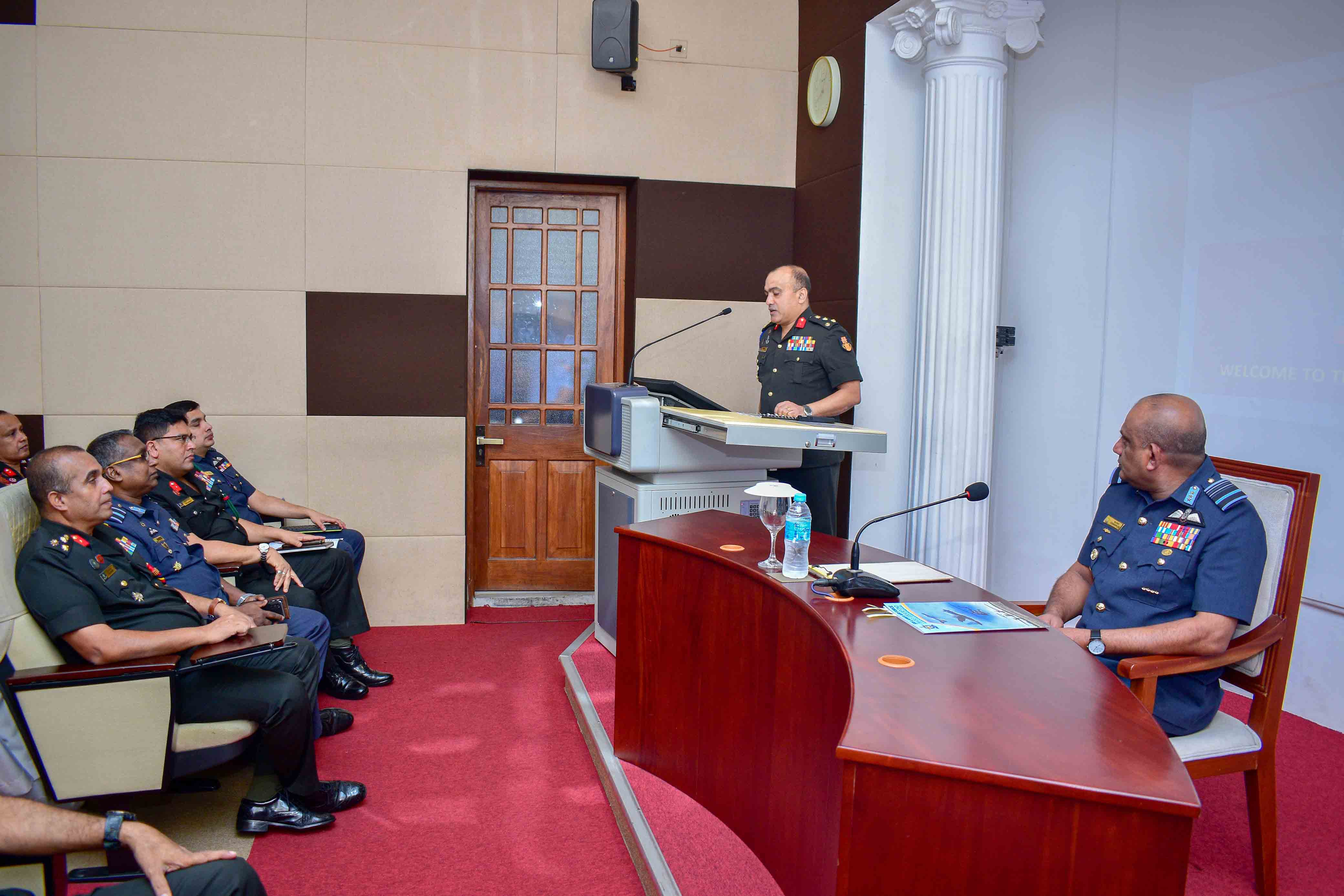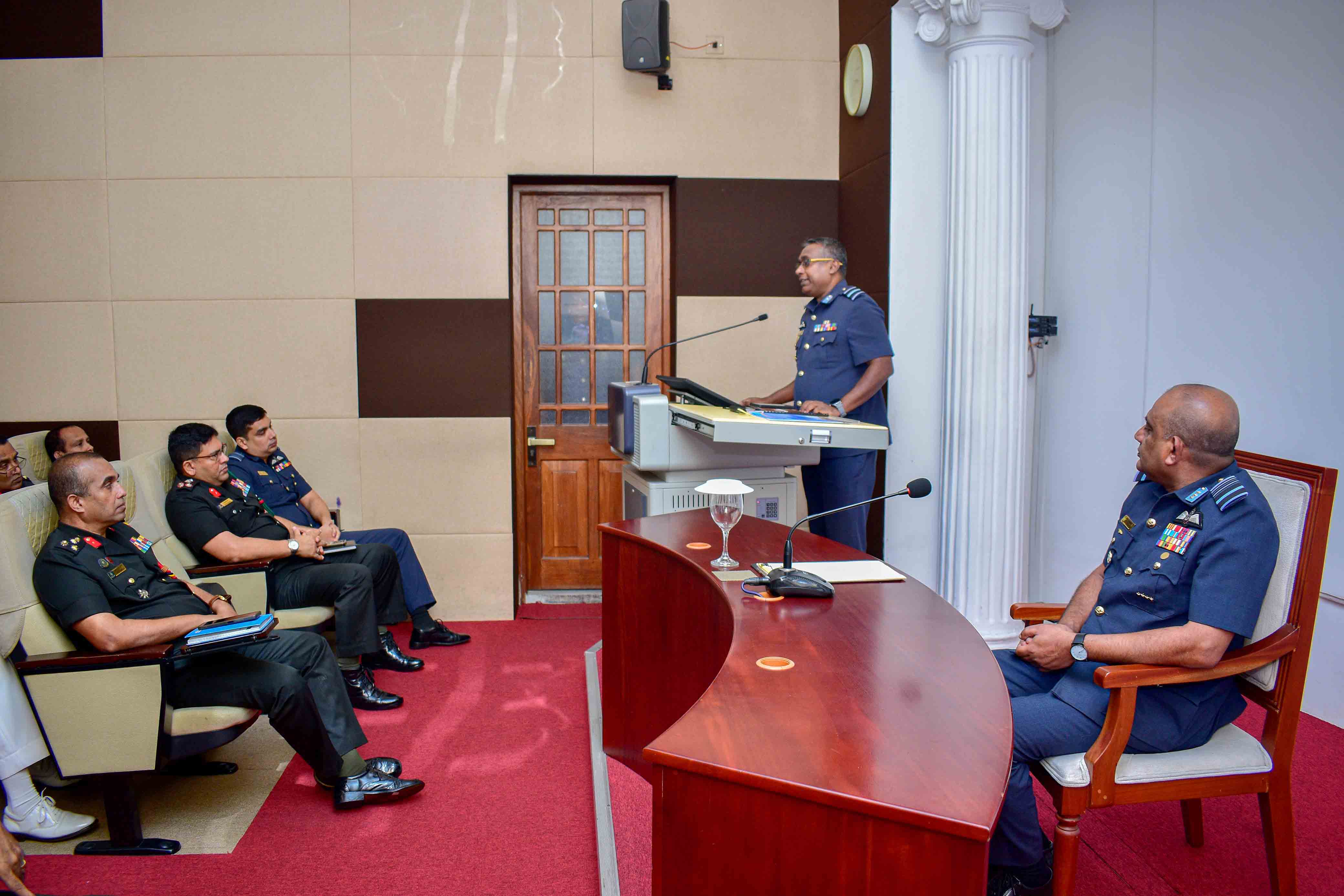 The Commander of the Sri Lanka Air Force, Air Marshal VB Edirisinghe WWV RWP RSP and three Bars USP fndu psc qhi, addressed the participants of NDC course number 04, on 31st October 2025. Commandant welcomed the Commander upon arrival and had a call-on prior to the address.