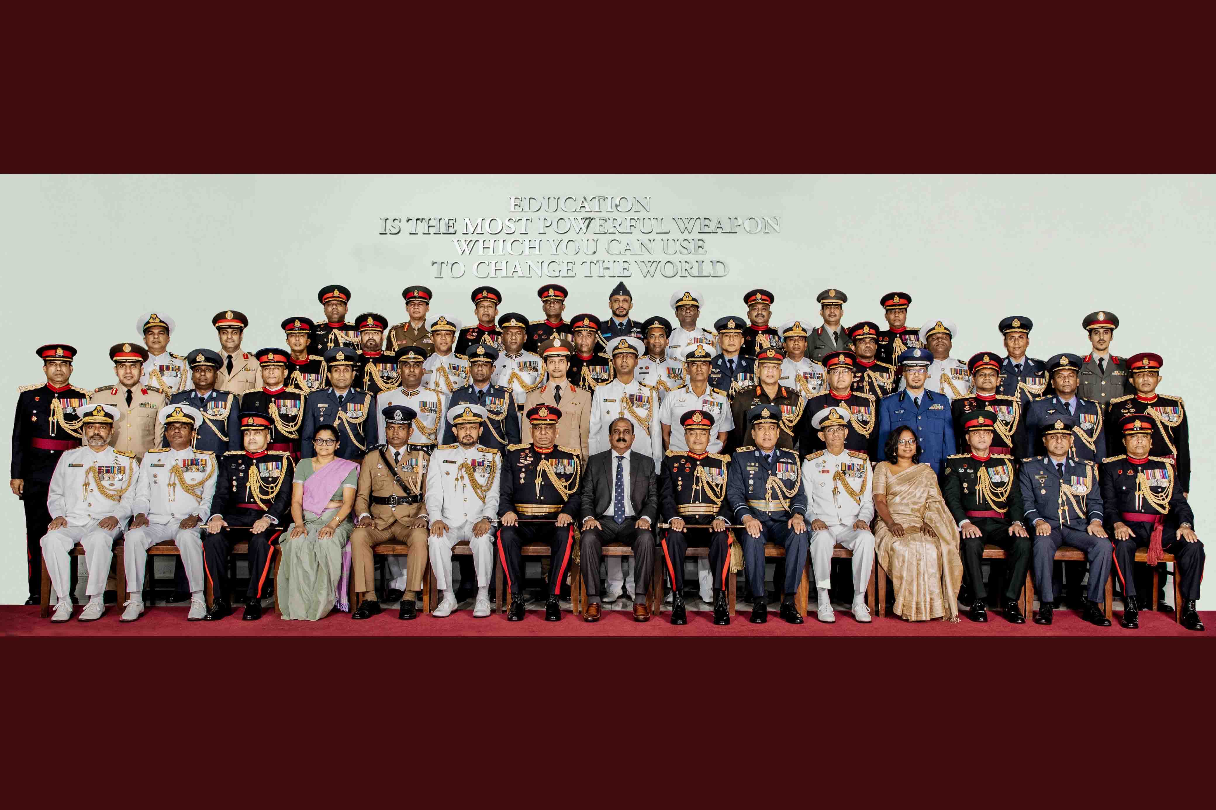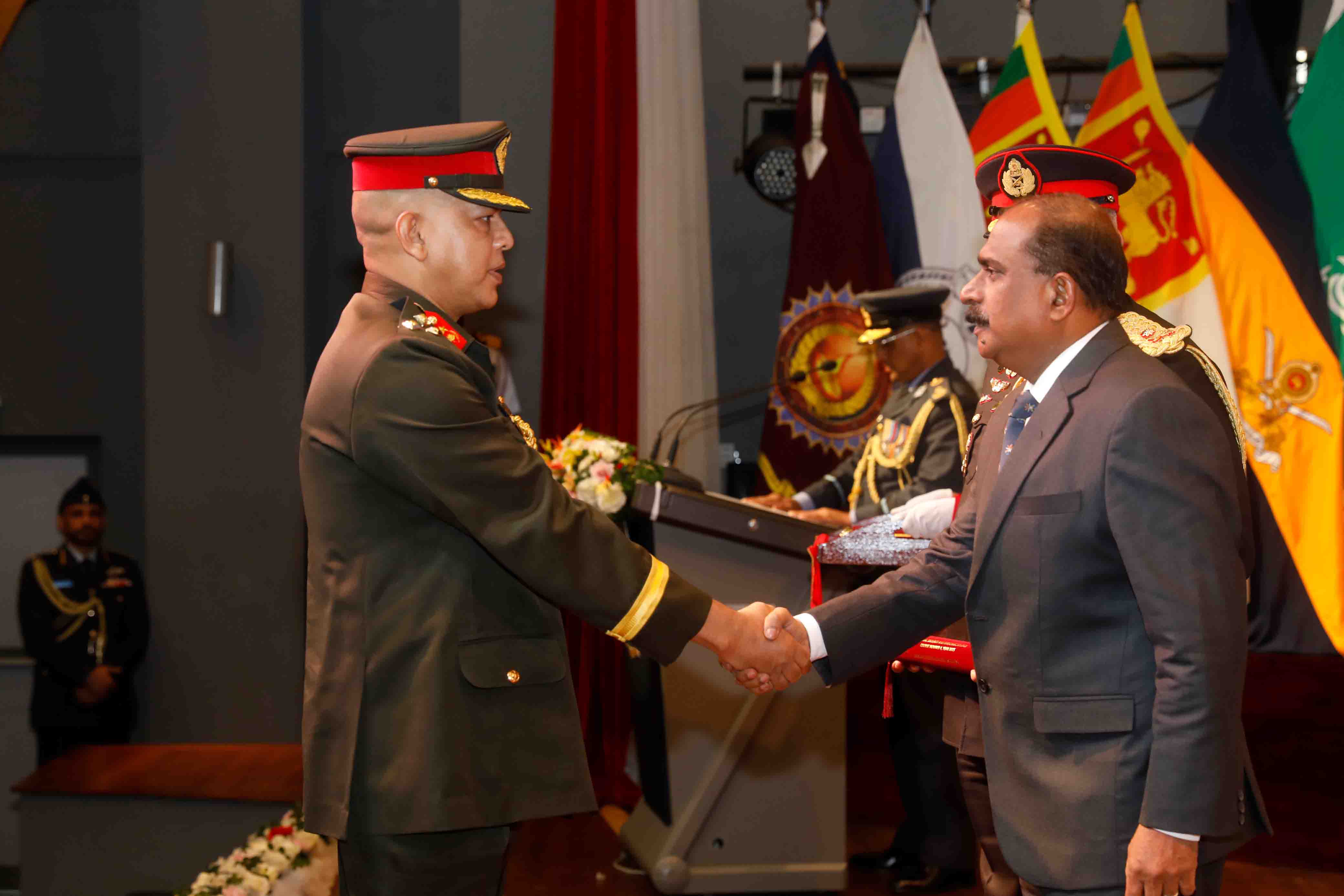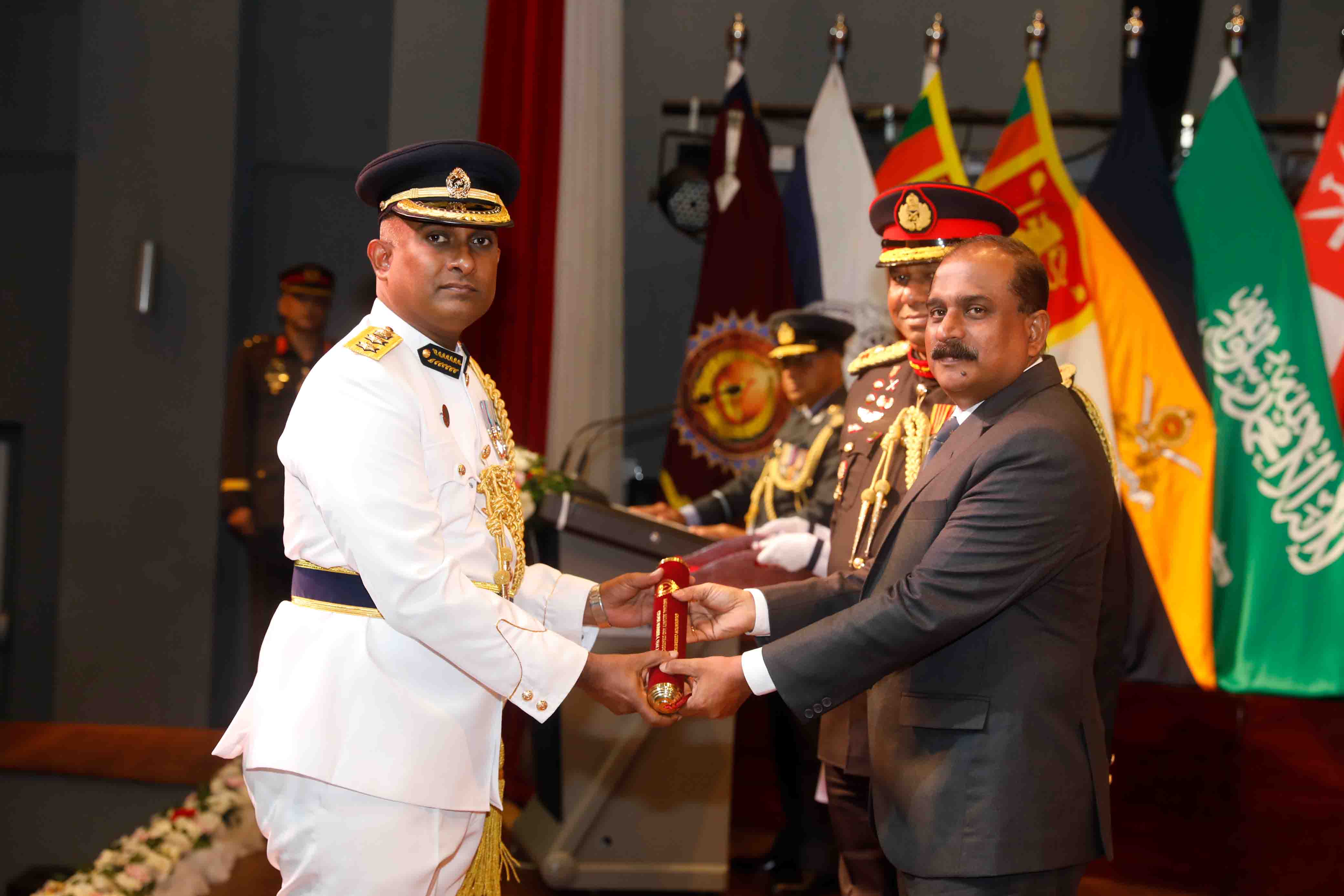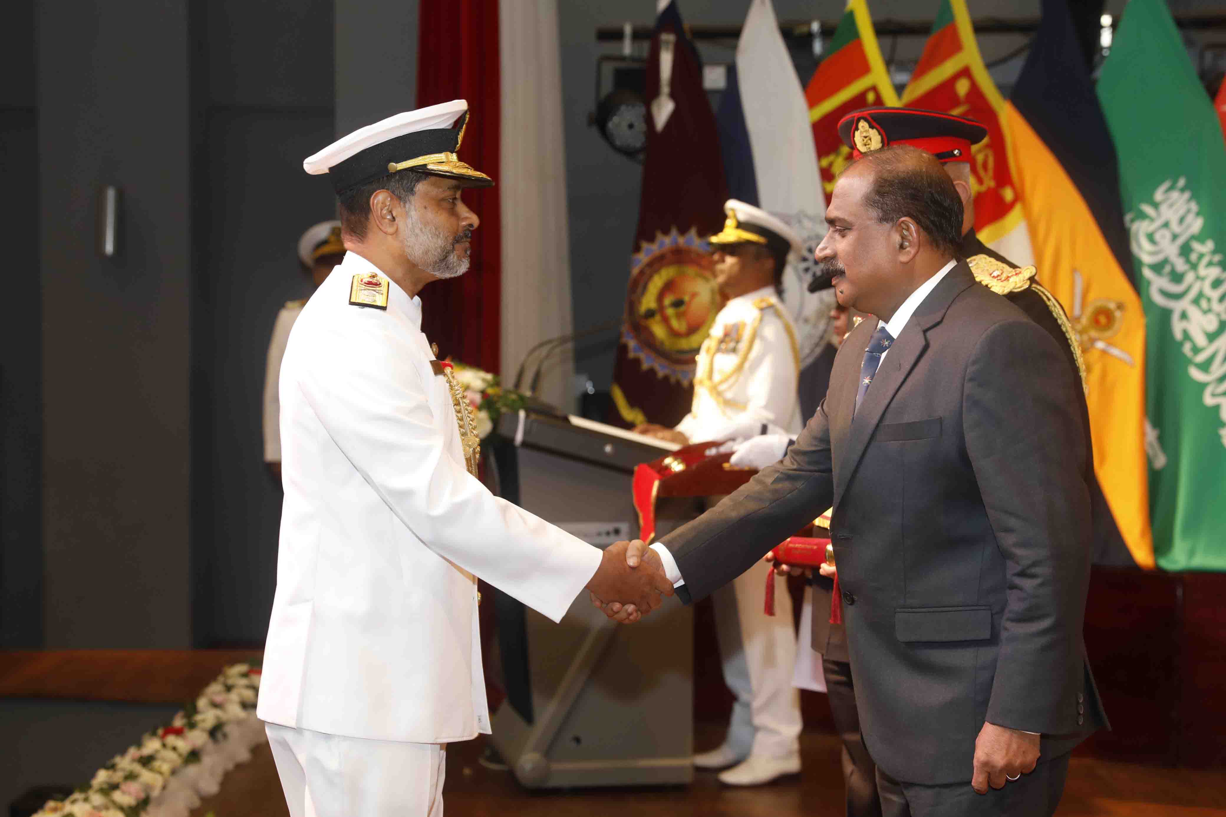 The event marked the culmination of 11 months long academic engagement, strategic learning and professional development by the course participants. Chief Guest commended graduates for their dedication and highlighted the importance of advanced defence education. He further appreciated the commitment of all staff of NDC, shaping strategic leaders for the future, and achievement of recognition that the institution has gained through maintaining high standard. 41 senior military and police officers from local and overseas graduated, representing 15 senior officers from SL Army, 07 from SL Navy, 06 from SL Air Force and 03 from Police Department. The overseas participation represents; 01 each from Bangladesh and India, 02 from Sultanate of Oman and 06 from Kingdom of Saudi Arabia.